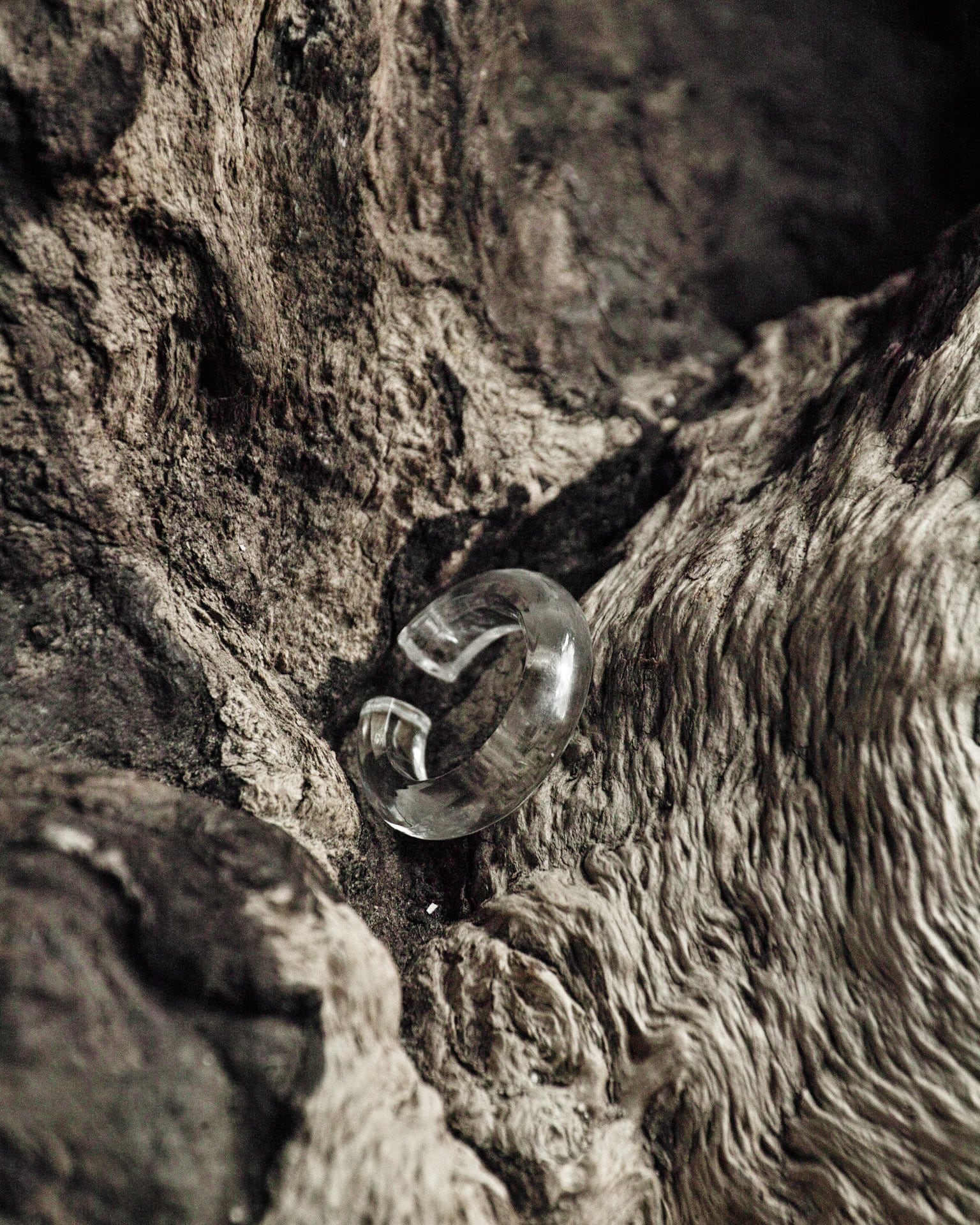 透明感のある水晶をもちいたイヤーカフ。耳元に静かな緊張感が漂います。