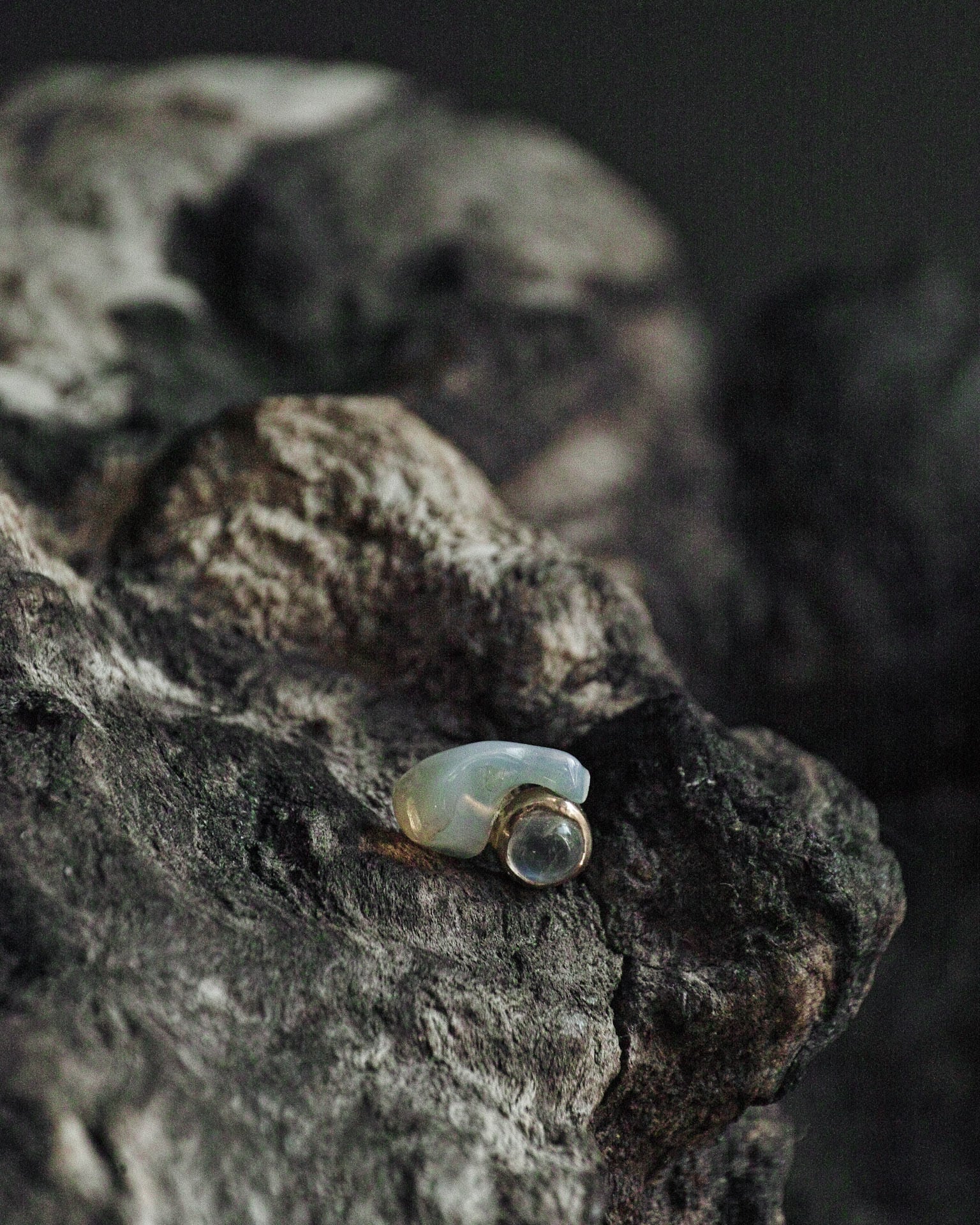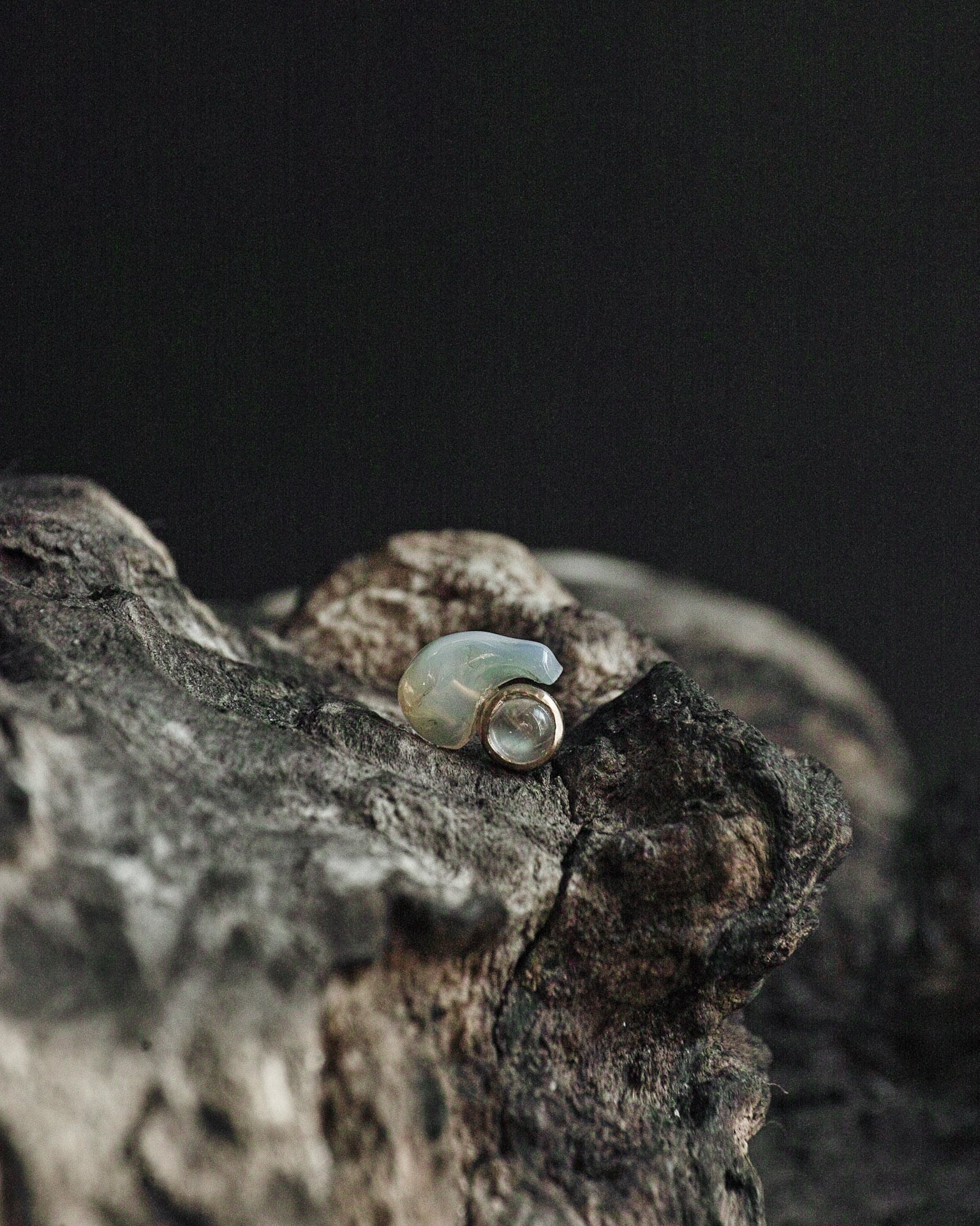 18k台座レインボームーンストーン+オパール原石ピアス