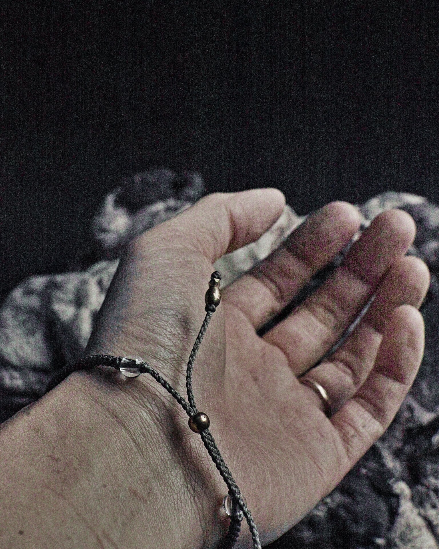 素材:ワックスコード 水晶ビーズ 14kゴールドフィールド